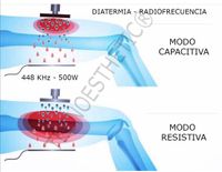 CAPACITIVA: Transductores revestidos de un material cerámico hipoalergénico que aumentan la impedancia. Indicada para el tratamiento del tejido superficial con alto contenido de agua, difusión profunda e inmediata de calor, activando la circulación de los tejidos blandos.