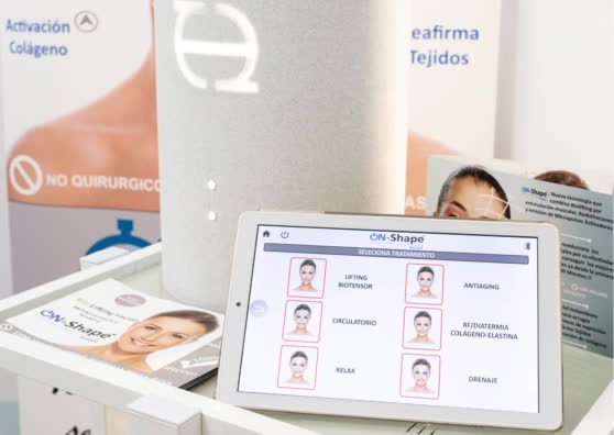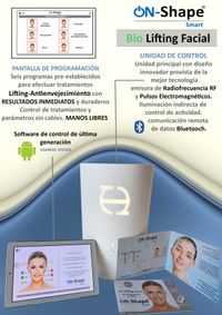 La última creación de Tecnoesthetic ®. DESARROLLADO Y FABRICADO INTEGRAMENTE EN ESPAÑA. . OnShape® SMART, la nueva tecnología desarrollada para tratamientos faciales, fabricada bajo los más altos estándares de calidad y certificación CE EMC. La unión inédita de PULSOS ELECTROMAGNÉTICOS, RADIOFRECUENCIA Y MICROCORRIENTES SECUENCIADAS. Todo ello con protocolos de trabajo totalmente automatizados y sistema MANOS LIBRES. Poner los transductores, designar tratamiento y listo¡¡. El equipo trabaja de modo automático permitiendo al profesional realizar otras tareas.